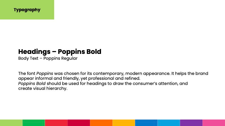 The task asked students to develop a brand redesign. Students had to assess several brand logos of their choosing, write about the brand guidelines of their company and produce a new brand logo.
